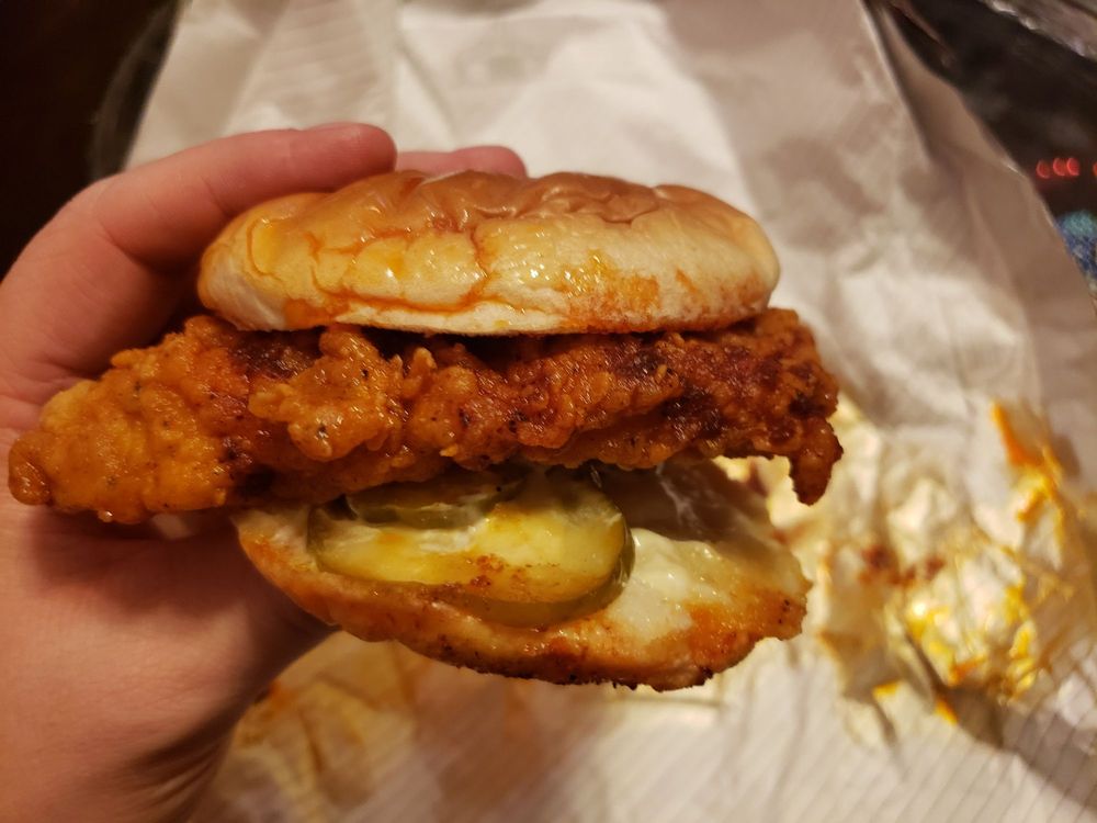 An extra crispy filet with premium pickles, spicy mayo, on a brioche-style bun.
